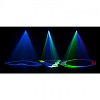 Компактный лазерный эффект с красными, зелеными и синими геометрическими узорами.