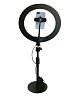 DEKKO F-265 - Настольная кольцевая селфи лампа для фотографов 26 см с 3 держателями телефонов на стойке с регулировкой высоты. Устойчивое круглое металлическое основание на стол с антискользящей поверхностью.