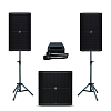 В состав комплекта входит пара активных акустических систем MACKIE THUMP212 с пиковой мощностью 1400 Вт каждая. Главная особенность серии THUMP, помимо чрезвычайно прочного корпуса, высокой мощности и качественного звучания во всём диапазоне частот, — встроенный подавитель обратной связи. Он особенно полезен при работе с микрофонами в непосредственной близости от колонок: функция позволяет практически полностью устранить эффект «заводки» микрофонов с резкими неприятными звуками, которые могут повредить акустику.