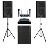 Готовый комплект для домашнего караоке на основе флагманской High End-системы Evolution EVOBOX Premium с беспроводным комплектом SHURE BLX288 и вокальными микрофонами SM58, дополненный активной акустикой MACKIE THUMP212 и сабвуфером THUMP115S. Прекрасно подойдёт для помещений площадью от 45 до 100 м².