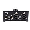 Оснащен комбо разъемами XLR/TRS и TRS.