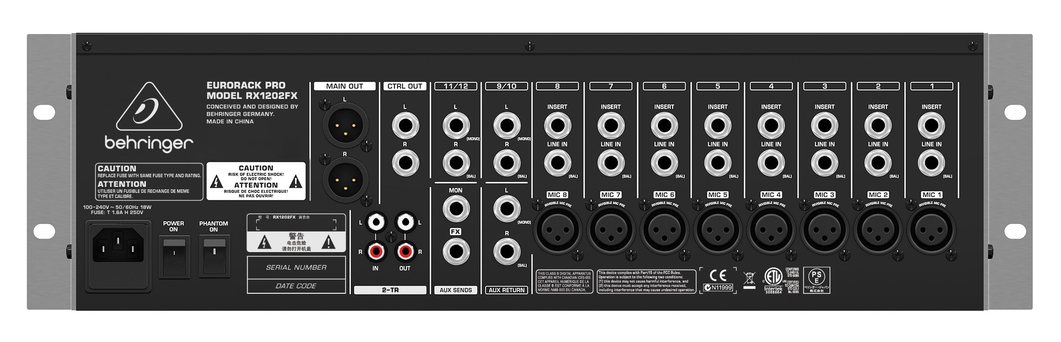 Характеристики Микшер 12-ти канальный BEHRINGER RX1202FX V2:
