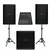Звукоусилительный комплект MACKIE на базе 12" активной акустики MACKIE THUMP212 и активного сабвуфера THUMP115S. В комплект добавлены беспроводные вокальные микрофоны ROCKDALE PRO Stage 220 BK Vocal.